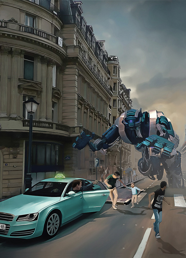 Illustration pour la couverture du livre "Uber, la prédation en bande organisée" de Laurent Lasne, paru en 2015 aux éditions Le Tiers Livre.